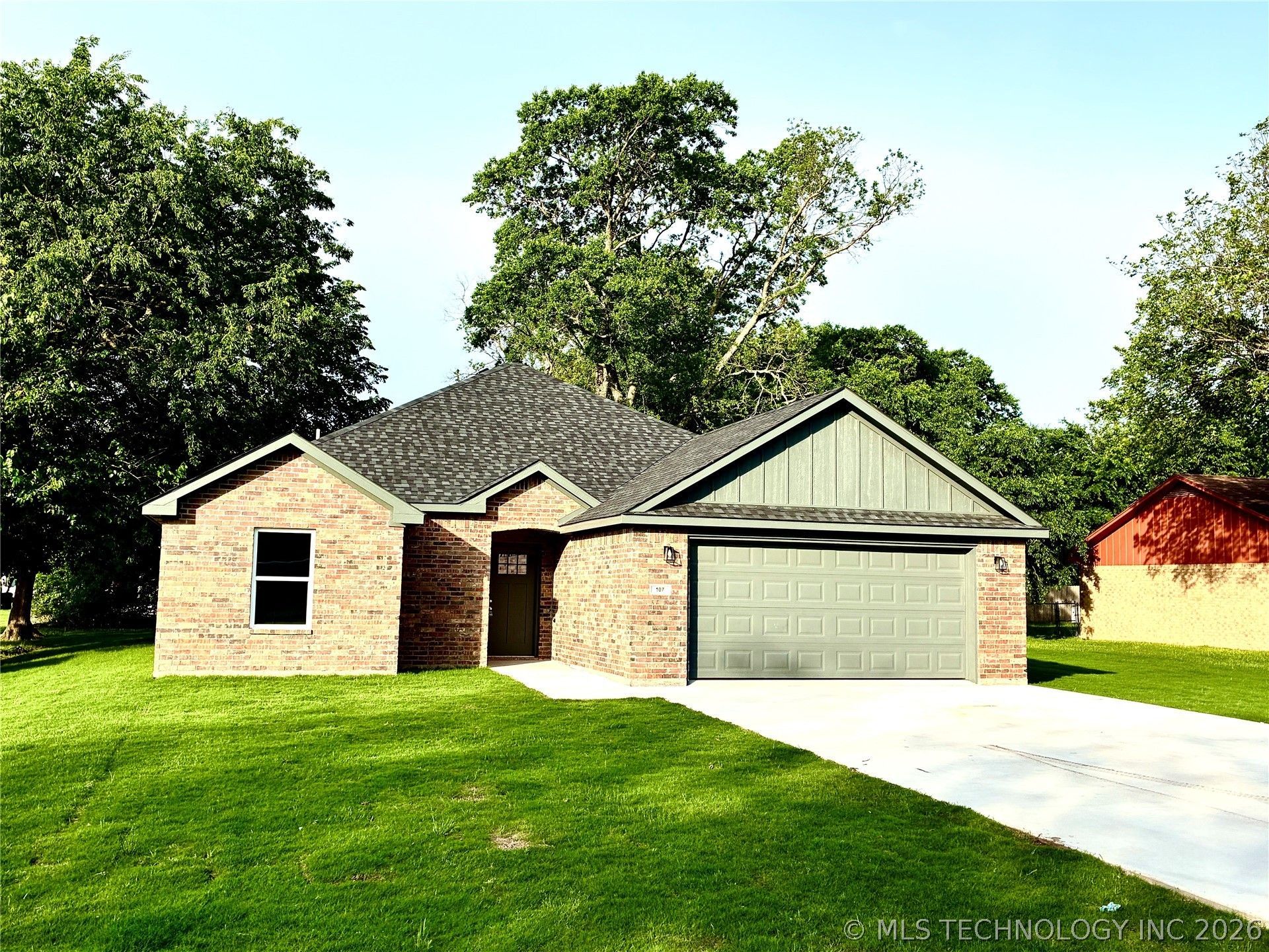 107 Jones St- Calera, OK. Beautiful new construction located in the heart of Calera! This 3 bedroom, 2 bathroom home with a 2 car garage features a thoughtfully designed open floor plan that offers both comfort and functionality. The kitchen showcases custom built cabinets and granite countertops. The spacious primary suite includes multiple closets. The primary bathroom boasts a tile walk-in shower and a soaker bathtub. Situated on a sizeable lot with mature trees, the backyard offers plenty of space to enjoy the outdoors and also includes a convenient outbuilding for storage or workspace. The homes brick exterior provides durability and timeless curb appeal. Conveniently located just minutes from Choctaw Casino and Resort- Durant and a short drive to Durant and Sherman, this home offers small town living with quick access to dining, entertainment and shopping. Agent owned.
